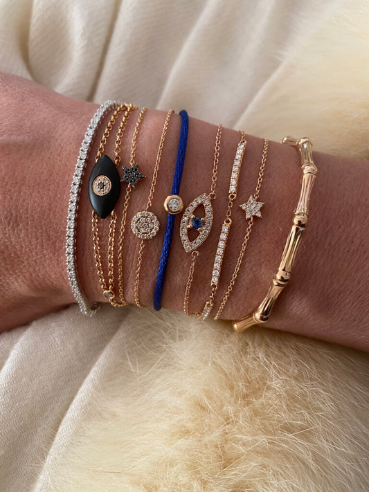 Serene - 18kt Rose Gold Evil Eye Bracelet with Diamonds and Cornflower Blue Sapphire