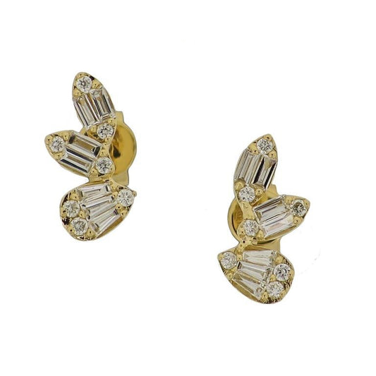 Foglia - 18kt Yellow Gold Diamond Leaf Stud Earrings