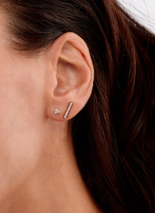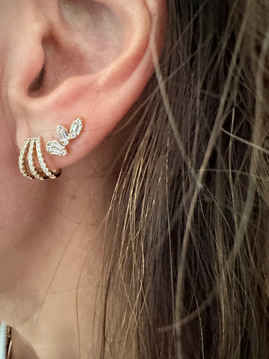 Tiara Huggies - 18kt Rose Gold Three Row Diamond Huggies Earrings