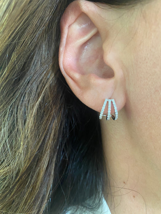 Tiara Huggies - 18kt White Gold Three Row Diamond Huggies Earrings