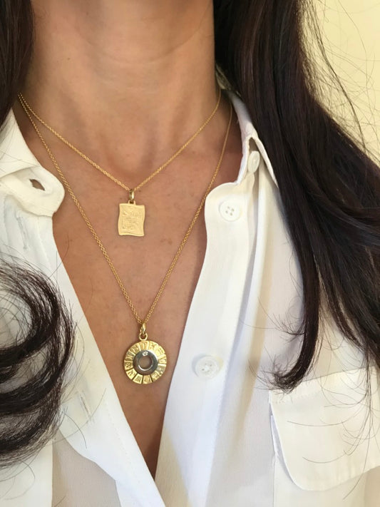 Zodiac Disc in Yellow and White Gold with Diamond