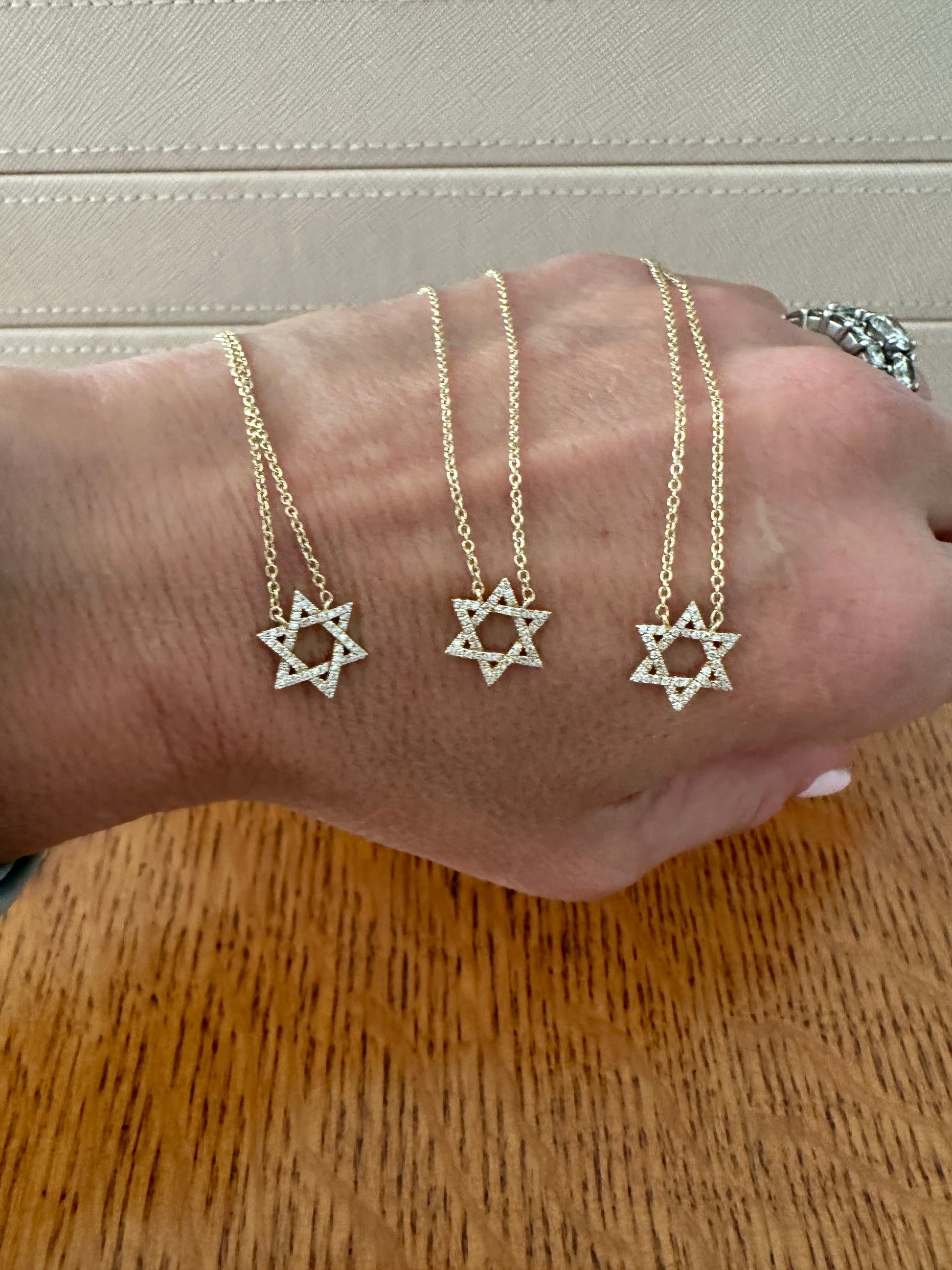 This beautiful 18kt Yellow Gold Star of David with Diamonds represents light, love and hope. A symbol of peace, pride and protection. Part of the proceeds from this item are going towards charity’s in Israel.