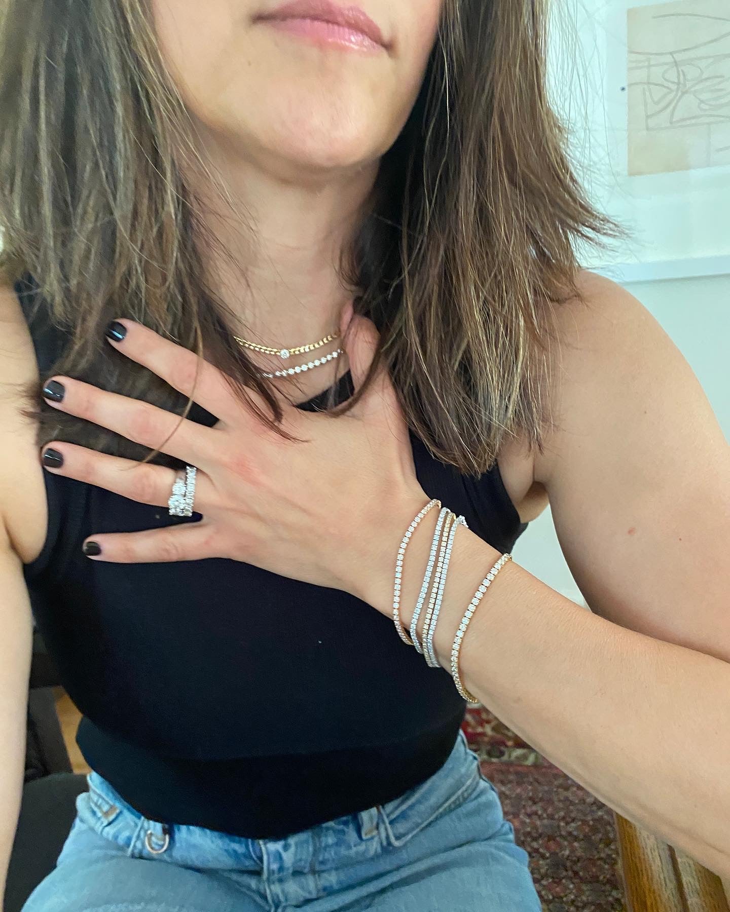 Perfectly understated when worn on its own and gorgeous when layered with your own collection of bracelets. Fashion may come and go but the diamond tennis bracelet is all time favourite. The perfect dazzling gift of love.