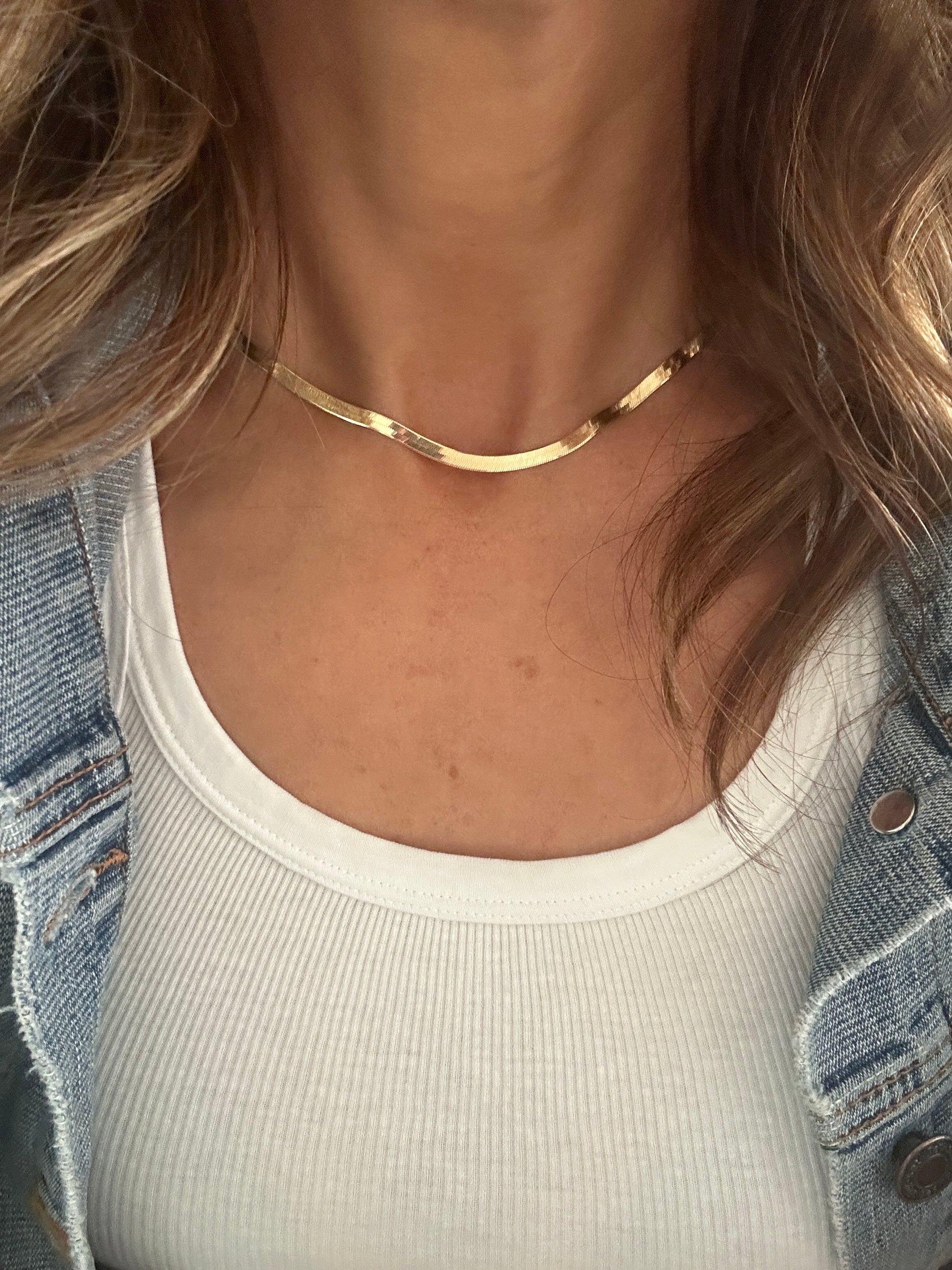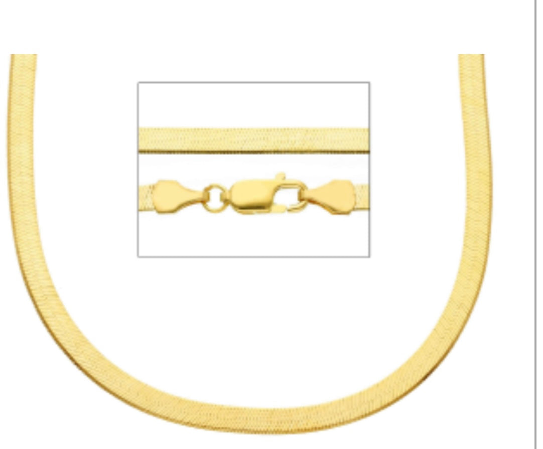 This simply stunning 18kt solid yellow gold snake chain sits effortlessly on your neck moving with you to catch the light. Makes a statement worn alone or compliments other necklaces. Gauge 3.5mm